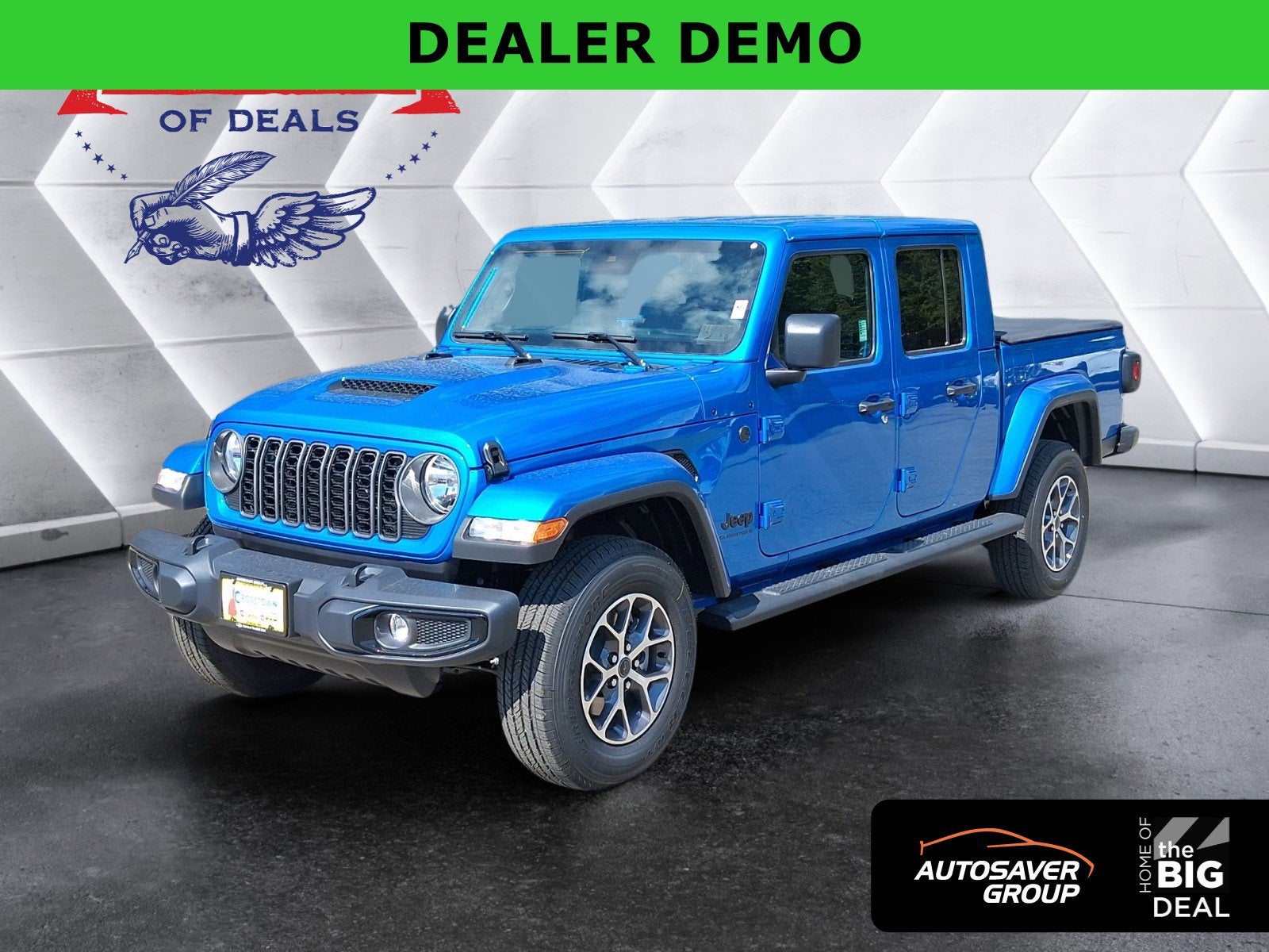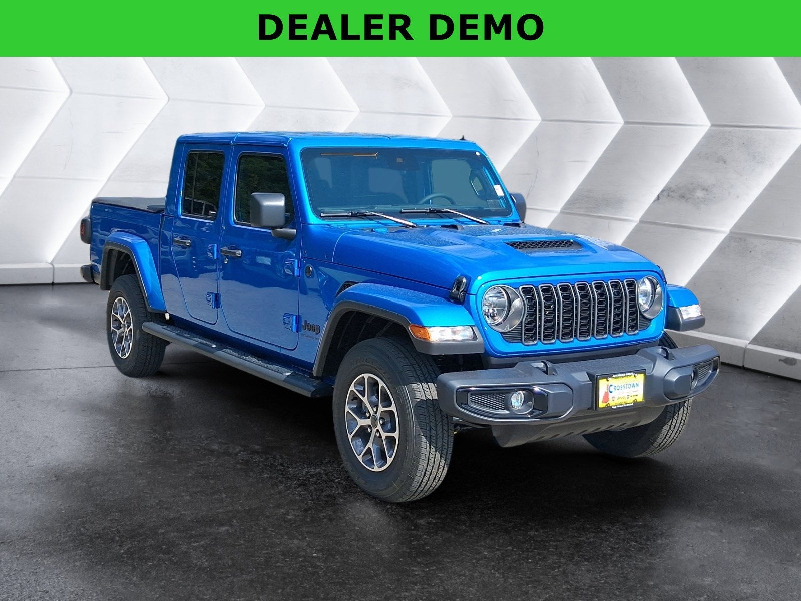 Featured Equipment: Gladiator Sport S, 4D Crew Cab, 3.6L V6 24V VVT, 8-Speed Automatic, 4WD, Hydro Blue Pearlcoat, Black w/Cloth Low-Back Bucket Seats or Power Adjust Nappa Leather Seats, 12.3 Touchscreen Display, 3.73 Rear Axle Ratio, 4G LTE Wi-Fi Hot Spot, Advanced Brake Assist, Alexa Built-In, AM/FM radio: SiriusXM, Apple CarPlay, Apple CarPlay/Android Auto, Automatic Headlamps, Auxiliary Switches, Body Color 3-Piece Hard Top, Body Color Fender Flares (2-Piece), Class IV Receiver Hitch, Cloth Low-Back Bucket Seats, Convenience Group, Corning Gorilla Glass, Dark Sky Appearance Package, Daytime Running Lamp System, Deep Tint Sunscreen Windows, Emergency/Assistance Call, Enhanced Adaptive Cruise Control, Freedom Panel Storage Bag, Front Door Locks 2-Door Passive Entry, Front fog lights, Full Speed Forward Collision Warning Plus, Heated Front Seats, Heated Steering Wheel, Heavy-Duty Engine Cooling, Mold In Color Bumper w/Gloss Black, MOPAR All-Weather Slush Mats, Mopar Black Tubular Side Steps, MOPAR Spray In Bedliner, Normal Duty Plus Suspension, ParkView Rear Back-Up Camera, Performance Hood, Power Heated Mirrors, Premium Wrapped Steering Wheel, Quick Order Package 24S Sport S, Radio: Uconnect 5 w/12.3 Display, Rear Sliding Window, Rear Window Defroster, Remote Start System, Security Alarm, Speed control, Sun Visors w/Illuminated Vanity Mirrors, Trailer Hitch Zoom, Trailer Tow & Aux Switch Group, Universal Garage Door Opener, Wheels: 17 x 7.5 Gray.