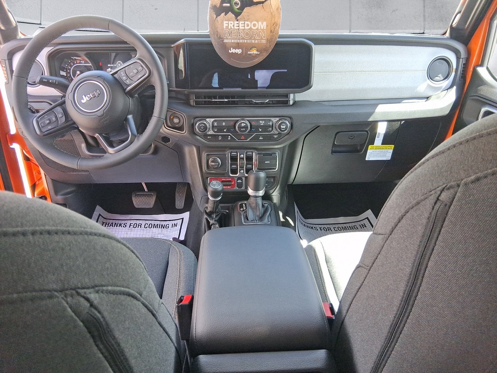 Featured Equipment: **OFF-ROAD CAPABLE UPFIT** MOPAR LIFT, 5 FUEL WHEELS, 5 TOYO ROUGH COUNTRY TIRES, ROUGH COUNTRY DROP STEPS, FENDER EXTENSIONS, Gladiator Willys MOPAR LIFT, 4D Crew Cab, 3.6L V6 24V VVT, 8-Speed Automatic, 4WD, Joose, Black w/Premium Cloth Seats w/Sport Bolsters, 115V Auxiliary Power Outlet, 12.3 Touchscreen Display, 4-Wheel Drive Decal, 400W Inverter, 4G LTE Wi-Fi Hot Spot, 97 MPH Vehicle Max Speed Calibration, Advanced Brake Assist, Air Conditioning w/Auto Temperature Control, Alexa Built-In, Alpine Premium Audio System, Apple CarPlay/Android Auto, Auto-Dimming Rear-View Mirror, Automatic Headlamps, Auxiliary Switches, Black 3-Piece Hard Top, Black Grille, Bluetooth® Wireless Speaker, Body Color Fender Flares (2-Piece), Class IV Receiver Hitch, Cloth Low-Back Bucket Seats, Cluster 7.0 TFT Color Display, Connected Travel & Traffic Services, Connectivity - US/Canada, Convenience Group, Corning Gorilla Glass, Daytime Running Lamp System, Daytime Running Lamps LED Accents, Deep Tint Sunscreen Windows, E-Locker Rear Axle, Emergency/Assistance Call, Enhanced Adaptive Cruise Control, Freedom Panel Storage Bag, Front Door Locks 2-Door Passive Entry, Front fog lights, Front Heavy Duty Red Accent Shock Absorbers, Front LED Fog Lamps, Full Speed Forward Collision Warning Plus, Google Android Auto, GPS Antenna Input, GPS Navigation, HD Radio, Heated Front Seats, Heated Steering Wheel, Heavy-Duty Engine Cooling, Integrated Center Stack Radio, Integrated Voice Command w/Bluetooth®, LED Premium Reflector Headlamps, LED Taillamps, Media Hub w/2 Charge Only USBs, Mold In Color Bumper w/Gloss Black, MOPAR All-Weather Slush Mats, MOPAR Soft Tri-Fold Tonneau Cover, MOPAR Spray In Bedliner, Off-Road Plus Mode, ParkView Rear Back-Up Camera, Power Heated Mirrors, Premium Wrapped Steering Wheel, Protection Sill Rails, Quick Order Package 24W Willys, Radio: Uconnect 5 Nav w/12.3 Display, Rear Heavy Duty Red Accent Shock Absorbers, Rear Sliding Window, Rear Window Defroster, Remote Start System, Security Alarm, SiriusXM Radio Service, SiriusXM w/360L, Sun Visors w/Illuminated Vanity Mirrors, Technology Group, Trailer Hitch Zoom, Universal Garage Door Opener, USB Host Flip, Wheels: 17 x 7.5 Painted Black, Willys Hood Decal, Willys Suspension.
