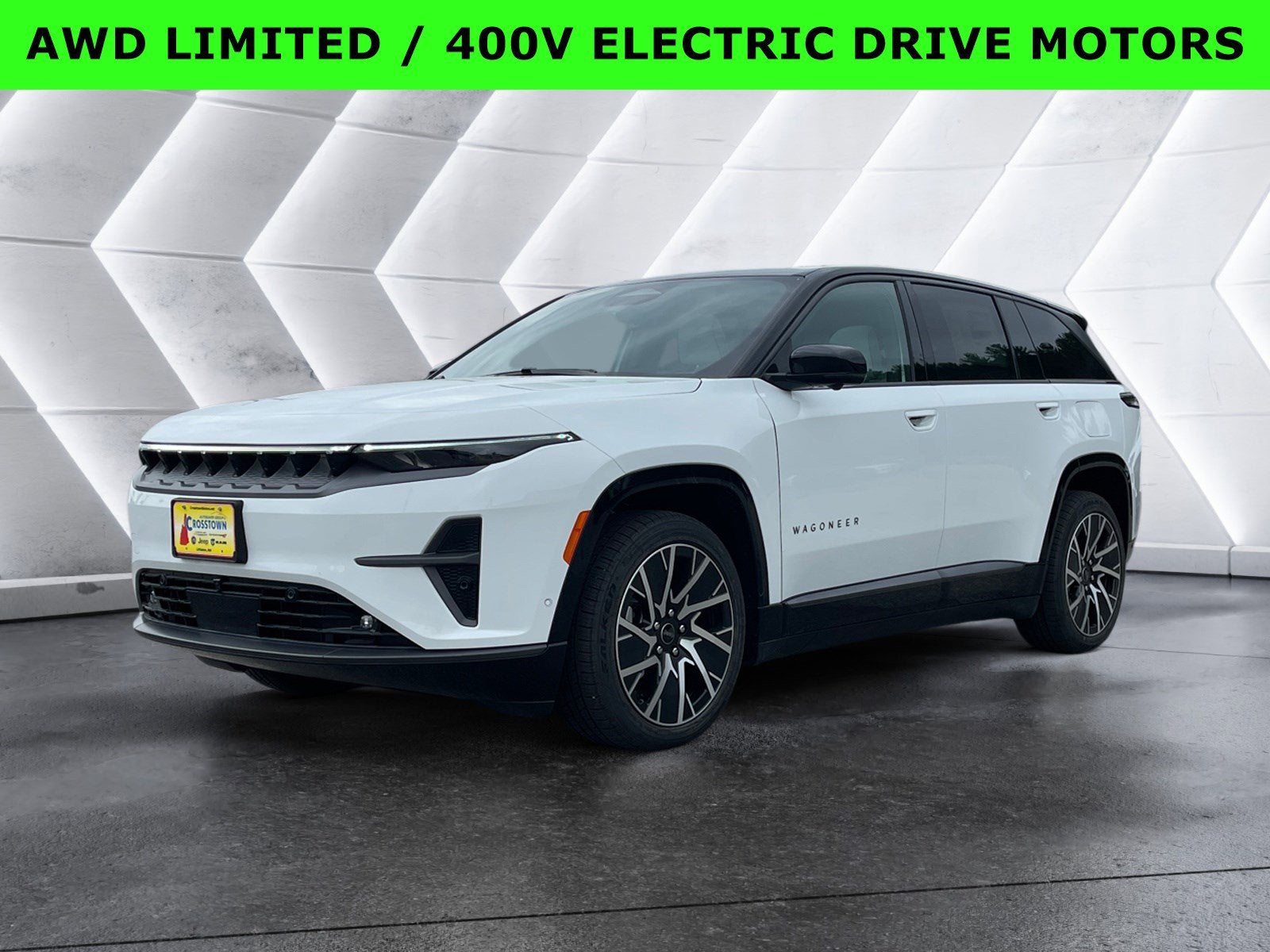 Featured Equipment: Wagoneer S Limited 400V 4XE, 4D Sport Utility, Electric Motor, 1-Speed Automatic, 4WD, Bright White Clearcoat, Arctic/Black w/Neo Ultra Lux II Seats, ABS brakes, Alloy wheels, AM/FM radio: SiriusXM with 360L, Apple CarPlay/Android Auto, Auto High-beam Headlights, Automatic temperature control, Compass, Electronic Stability Control, Front dual zone A/C, Front fog lights, Fully automatic headlights, Heated door mirrors, Heated front seats, Illuminated entry, Low tire pressure warning, Memory seat, Navigation System, ParkView Rear Back-Up Camera, Power driver seat, Power Liftgate, Power moonroof, Power passenger seat, Premium audio system: UConnect 5, Radio: Uconnect 5 Nav w/12.3 Display, Rear dual zone A/C, Remote keyless entry, Traction control, Two Tone Paint Group, Wheels: 20 x 8.5 Painted Diamond Aluminum Design 1.