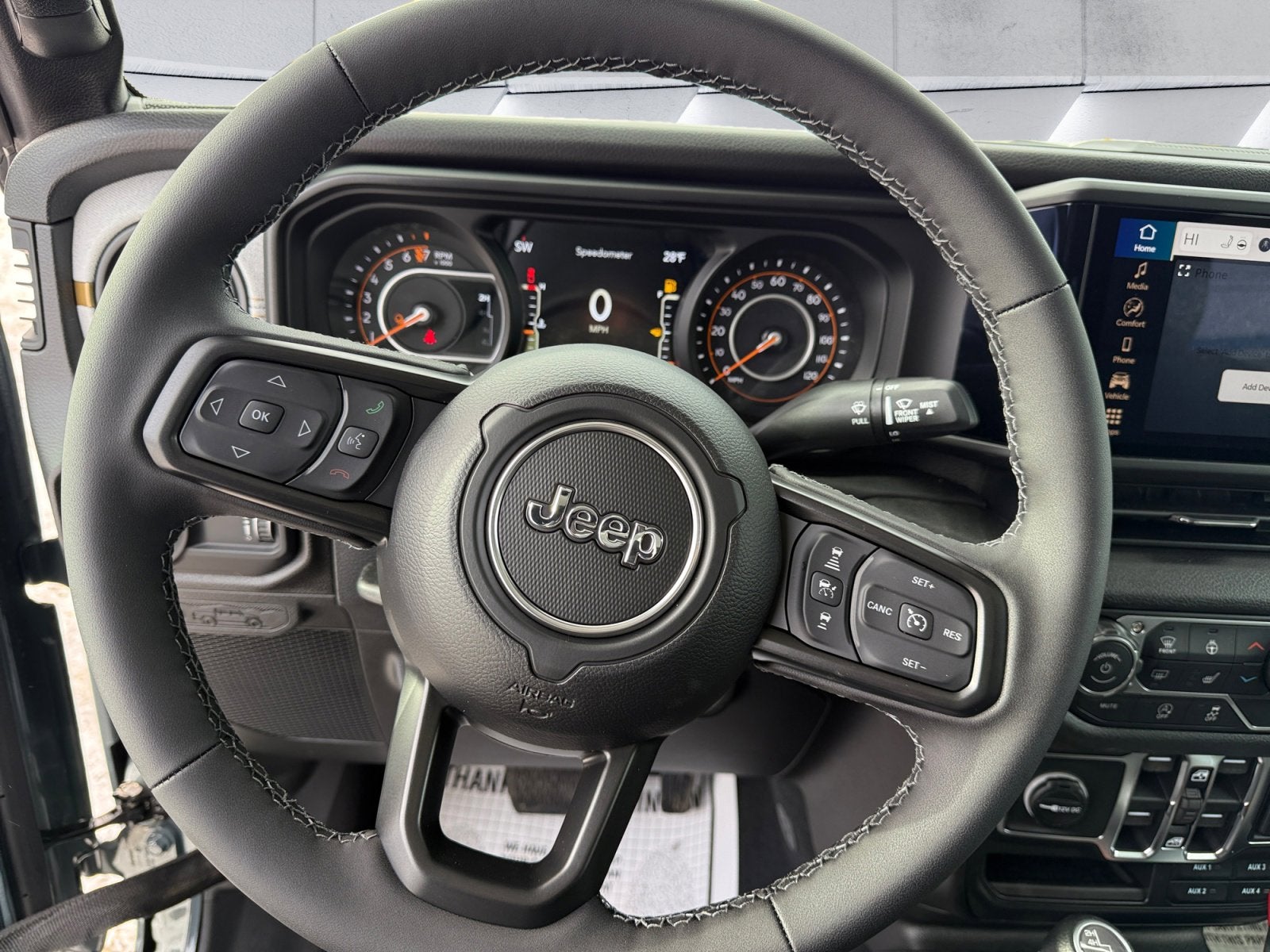 4.10 Rear Axle Ratio, 8 Speakers, Advanced Brake Assist, Air Conditioning with Auto Temp Control, Anti-Spin Differential Rear Axle, Automatic Headlamps, Auxiliary Switches, Black Molded-in-Color Fender Flares (2-Piece), Class IV Receiver Hitch, Cluster 7.0 TFT Color Display, Convenience Group, Conventional Differential Front Axle, Corning Gorilla Glass, Dana M210 Wide Front Axle, Dana M220 Wide Rear Axle, Daytime Running Lamp System, Daytime Running Lamps LED Accents, Deep Tint Sunscreen Windows, Emergency/Assistance Call, Front Door Locks 2-Door Passive Entry, Front LED Fog Lamps, Full Speed Forward Collision Warning Plus, Heated Front Seats, Heated Steering Wheel, Heavy-Duty Engine Cooling, LED Headlamp and Fog Lamp Group, LED Premium Reflector Headlamps, Max Tow Package with 4.10 Axle Ratio, Normal Duty Plus Suspension, Power Heated Mirrors, Premium Wrapped Steering Wheel, Quick Order Package 24S Sport S, Radio: Uconnect 5 with 12.3 Display, Remote Start System, Security Alarm, Sun Visors with Illuminated Vanity Mirrors, Trailer Hitch Zoom, Trailer Tow and Auxiliary Switch Group, Universal Garage Door Opener, Wheels: 17 x 7.5 Gray.