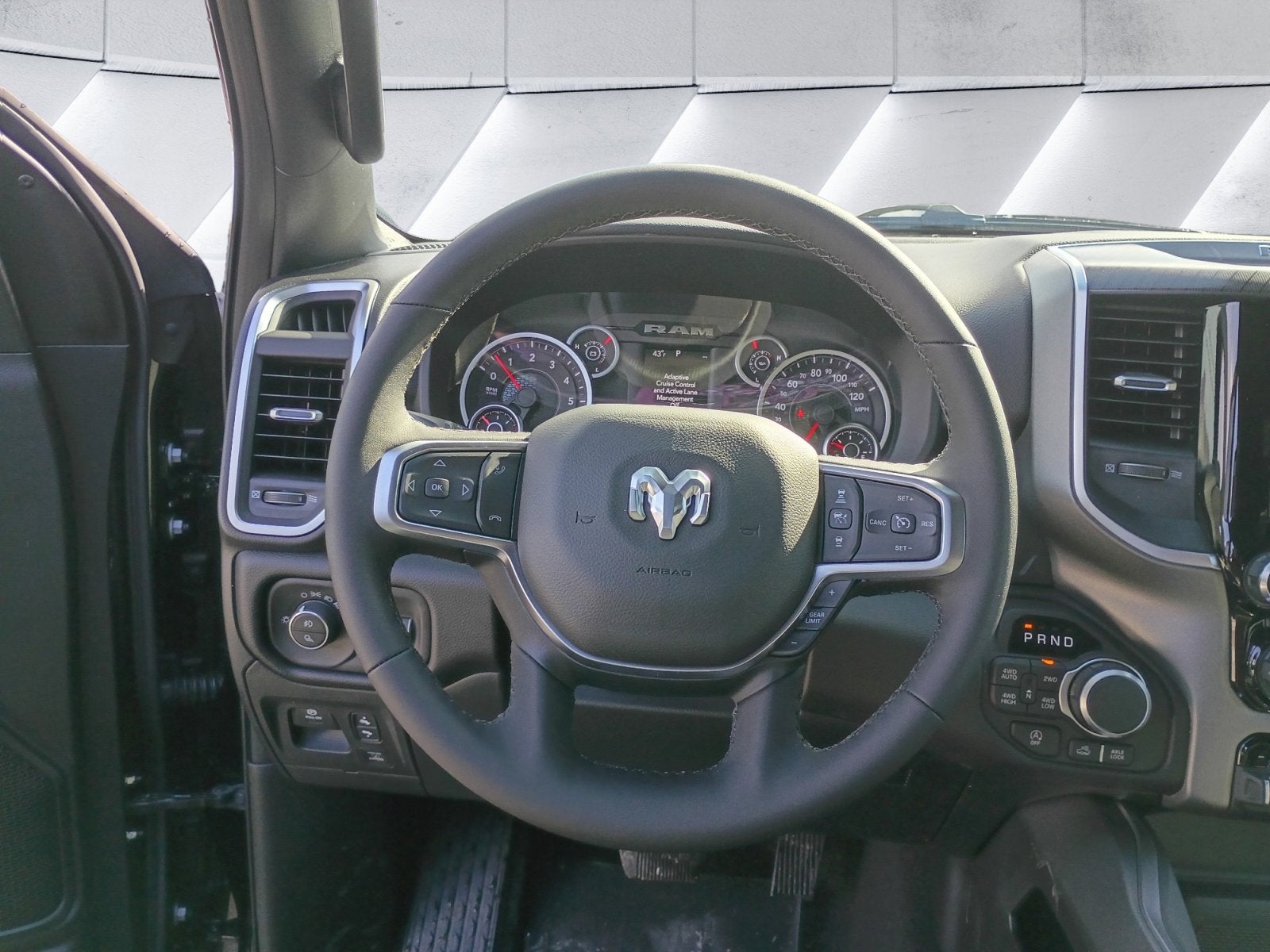 Featured Equipment: 1500 Big Horn/Lone Star, 4D Crew Cab, HEMI 5.7L V8 Multi Displacement VVT eTorque, 8-Speed Automatic, 4WD, Diamond Black Crystal Pearlcoat, Black w/Cloth Bench Seat Or Cloth Bucket Seats, 115V Auxiliary Power Outlet, 2nd Row in Floor Storage Bins, 3 Rear Seat Head Restraints, 4 Way Front Headrests, 400W Inverter, 48V Belt Starter Generator, 4G LTE Wi-Fi Hot Spot, Alloy wheels, AM/FM radio, Apple CarPlay, Apple CarPlay/Android Auto, Auto High-beam Headlights, Auto Power-Folding Mirrors, Auto-Dimming Exterior Driver Mirror, Auto-Dimming Rear-View Mirror, Bed Utility Group, Big Horn Level 1 Equipment Group, Black Exterior Mirrors, Black Interior Accents, Black Premium Power Mirrors, Body Color Door Handles, Body Color Fender Flares, Body Color Front Bumper, Body Color Rear Bumper with Step Pads, Body Color Tailgate Handle, Bucket Seats, Center Console Parts Module, Convex Wide-Angle Exterior Mirror Insert, Deluxe Cloth Bucket Seats, E-Locker Rear Axle, Electronic Stability Control, Exterior 115V AC Outlet, Exterior Mirrors Courtesy Lamps, Exterior Mirrors with Heating Element, Exterior Mirrors with Supplemental Signals, Front Extra Heavy Duty Shock Absorbers, Front fog lights, Front Seat Back Map Pockets, Full Length Floor Console, G/T Exhaust, Glove Box Lamp, Google Android Auto, Grille Surround 1 Body Color Texture 1 Black, Heated Front Seats, Heated Steering Wheel, Leather Wrapped Steering Wheel, Manual Adjust 4-Way Front Passenger Seat, MOPAR 4 Adjustable Cargo Tie-Down Hooks, MOPAR Front and Rear Rubber Floor Mats, MOPAR Spray in Bedliner, MyFlexCare Service Plan, Off Road Decals, Off Road Group, ParkView Rear Back-Up Camera, Pick-Up Box Lighting, Power 2-Way Driver Lumbar Adjust, Power Adjust 8-Way Driver Seat, Power Adjustable Pedals, Quick Order Package 27Z Big Horn, Radio: Uconnect 5 W with 8.4 Display, Raised Ride Height, RAM Grille Badge - Chrome, RamBox Cargo Management System, Rear 60/40 Folding Seat, Rear Center Armrest, Rear Dome with on/Off Switch Lamp, Rear Extra Heavy Duty Shock Absorbers, Rear Power Sliding Window, Rear Wheelhouse Liners, Rear Window Defroster, Selec-Speed Control, SiriusXM Radio Service, SiriusXM Satellite Radio, Sport Appearance Package, Steering Wheel Mounted Audio Controls, Sun Visors with Illuminated Vanity Mirrors, Tow Hooks, Trailer Brake Control, Universal Garage Door Opener, Wheels: 18 x 8 Cast-Aluminum Painted.