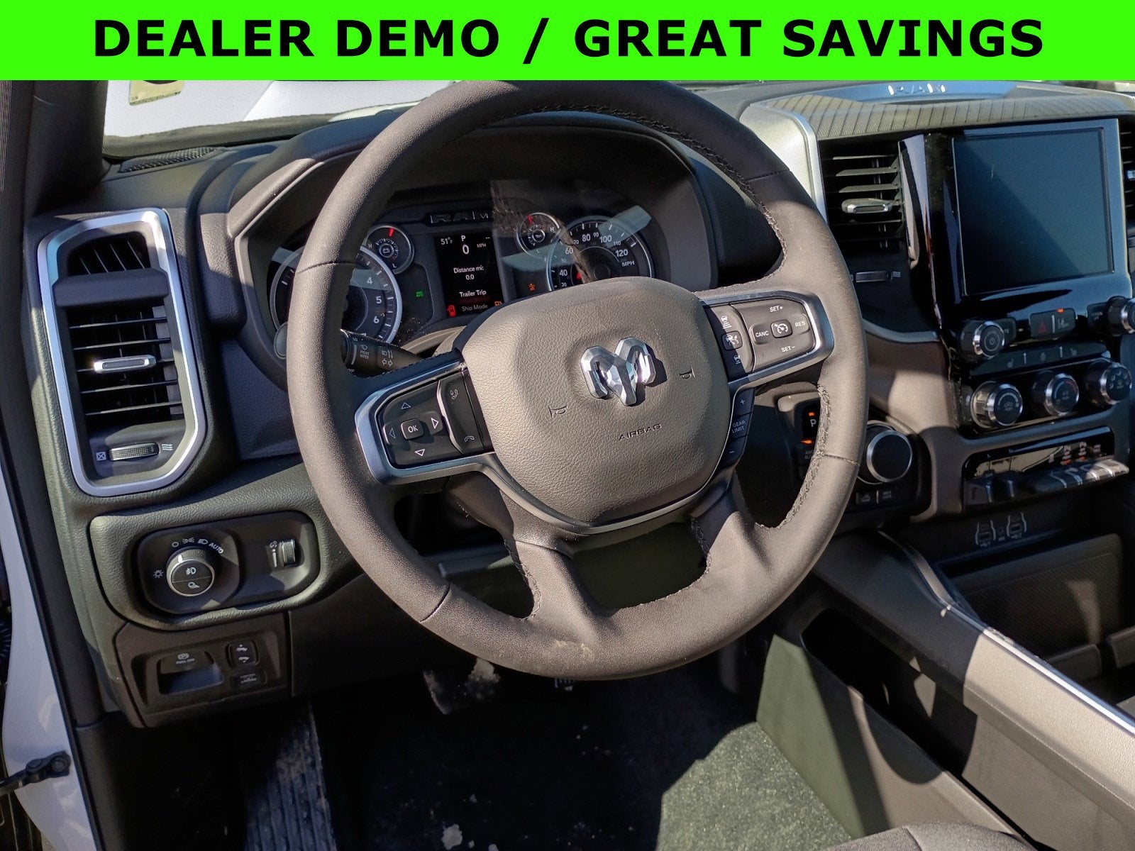 Featured Equipment: 1500 Big Horn/Lone Star, 4D Crew Cab, HEMI 5.7L V8 Multi Displacement VVT eTorque, 8-Speed Automatic, 4WD, Bright White Clearcoat, Black w/Cloth Bench Seat Or Cloth Bucket Seats, 115V Auxiliary Power Outlet, 2nd Row in Floor Storage Bins, 3 Rear Seat Head Restraints, 4 Way Front Headrests, 400W Inverter, 48V Belt Starter Generator, 4G LTE Wi-Fi Hot Spot, Alloy wheels, Apple CarPlay, Apple CarPlay/Android Auto, Auto High-beam Headlights, Auto Power-Folding Mirrors, Auto-Dimming Exterior Driver Mirror, Auto-Dimming Rear-View Mirror, Bed Utility Group, Big Horn Level 1 Equipment Group, Black Exterior Mirrors, Black Interior Accents, Black Premium Power Mirrors, Body Color Door Handles, Body Color Fender Flares, Body Color Front Bumper, Body Color Rear Bumper with Step Pads, Body Color Tailgate Handle, Bucket Seats, Center Console Parts Module, Convex Wide-Angle Exterior Mirror Insert, Deluxe Cloth Bucket Seats, E-Locker Rear Axle, Electronic Stability Control, Exterior 115V AC Outlet, Exterior Mirrors Courtesy Lamps, Exterior Mirrors with Heating Element, Exterior Mirrors with Supplemental Signals, Front Extra Heavy Duty Shock Absorbers, Front fog lights, Front Seat Back Map Pockets, Full Length Floor Console, Fully automatic headlights, Glove Box Lamp, Grille Surround 1 Body Color Texture 1 Black, Heated Front Seats, Heated Steering Wheel, Leather Wrapped Steering Wheel, Manual Adjust 4-Way Front Passenger Seat, MOPAR 4 Adjustable Cargo Tie-Down Hooks, MOPAR Spray in Bedliner, Off Road Decals, Off Road Group, ParkView Rear Back-Up Camera, Pick-Up Box Lighting, Power 2-Way Driver Lumbar Adjust, Power Adjust 8-Way Driver Seat, Power Adjustable Pedals, Quick Order Package 27Z Big Horn, Radio: Uconnect 5 W with 8.4 Display, Raised Ride Height, RAM Grille Badge - Chrome, RamBox Cargo Management System, Rear 60/40 Folding Seat, Rear Center Armrest, Rear Dome with on/Off Switch Lamp, Rear Extra Heavy Duty Shock Absorbers, Rear Power Sliding Window, Rear Wheelhouse Liners, Rear Window Defroster, Selec-Speed Control, SiriusXM Radio Service, SiriusXM Satellite Radio, Sport Appearance Package, Steering Wheel Mounted Audio Controls, Sun Visors with Illuminated Vanity Mirrors, Tow Hooks, Trailer Brake Control, Universal Garage Door Opener, Wheels: 18 x 8 Cast-Aluminum Painted.