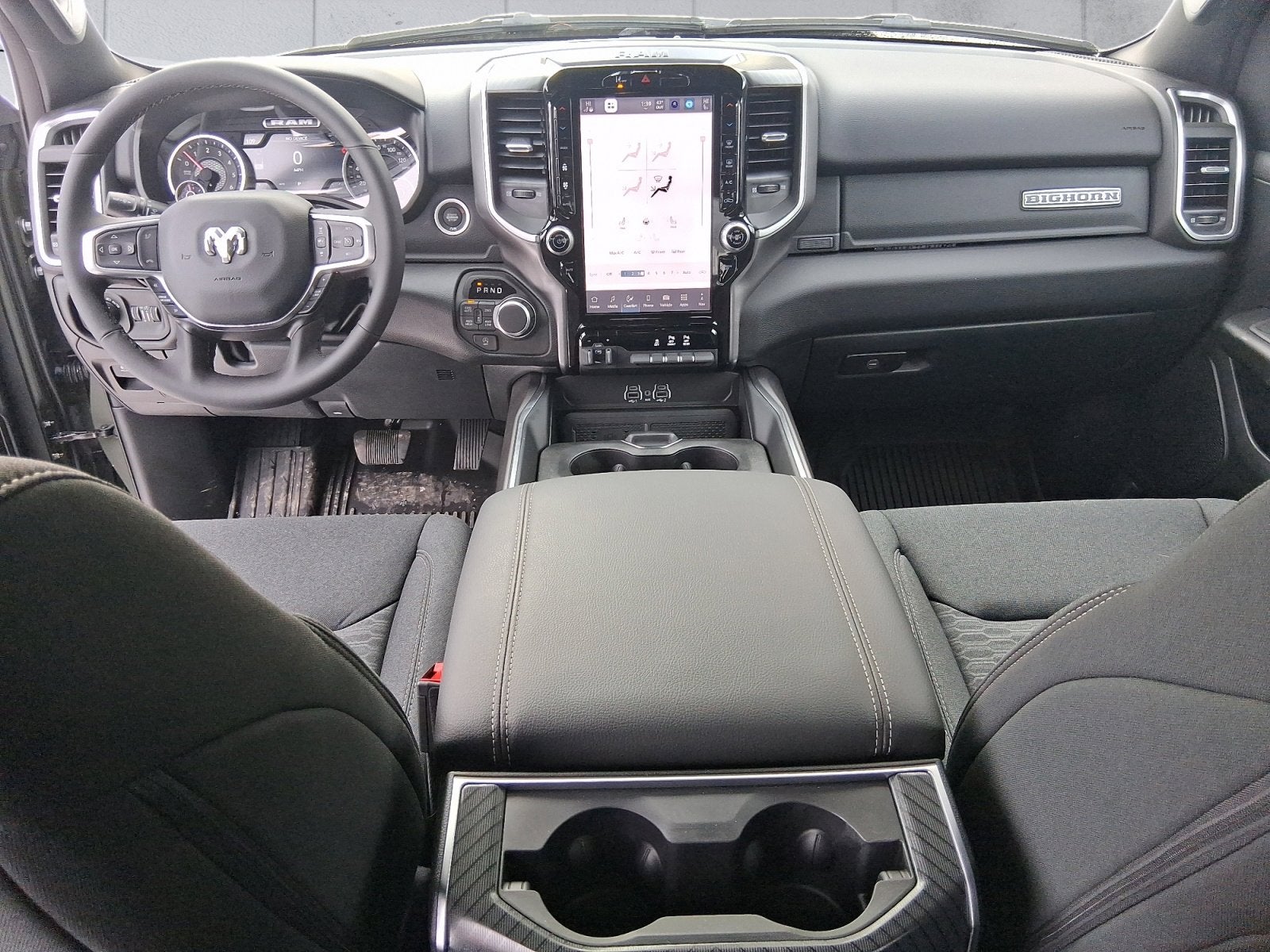 Featured Equipment: 1500 Big Horn/Lone Star, 4D Crew Cab, HEMI 5.7L V8 Multi Displacement VVT eTorque, 8-Speed Automatic, 4WD, Canyon Lake, Black w/Cloth Bench Seat, 115V Auxiliary Power Outlet, 115V Auxiliary Rear Power Outlet, 12 Touchscreen Display, 2nd Row in Floor Storage Bins, 3 Rear Seat Head Restraints, 4 Way Front Headrests, 400W Inverter, 4G LTE Wi-Fi Hot Spot, 9 Amplified Speakers with Subwoofer, Accent Color Door Handles, Accent Color Premium Power Mirrors, Accent Color Tailgate Handle, Air Conditioning ATC with Dual Zone Control, Alloy wheels, Anti-Spin Differential Rear Axle, Apple CarPlay, Apple CarPlay/Android Auto, Auto Power-Folding Mirrors, Auto-Dimming Exterior Driver Mirror, Auto-Dimming Rear-View Mirror, Bed Utility Group, Big Horn Level 2 Equipment Group, Black Exterior Mirrors, Black Exterior Truck Badging, Black Headlamp Bezels, Black Interior Accents, Black Painted Exterior Mirrors Caps, Black Premium Power Mirrors, Black Tail Lamp Bezels, Body Color Fender Flares, Body Color Front Bumper, Body Color Rear Bumper with Step Pads, Bucket Seats, Center Console Parts Module, Cluster 7.0 TFT Color Display, Configurable Drive Mode, Connected Travel and Traffic Services, Connectivity - US/Canada, Convex Wide-Angle Exterior Mirror Insert, Deluxe Cloth Bucket Seats, Disassociated Touchscreen Display, Dual Exhaust with Black Tips, Electronic Stability Control, Exterior 115V AC Outlet, Exterior Mirrors Courtesy Lamps, Exterior Mirrors with Heating Element, Exterior Mirrors with Supplemental Signals, Front fog lights, Front Seat Back Map Pockets, Full Length Floor Console, Fully automatic headlights, G/T Exhaust, Global Telematics Box Module, Glove Box Lamp, Google Android Auto, GPS Antenna Input, GPS Navigation, Grille Black Surround Black Mesh, HD Radio, Heated Front Seats, Heated Steering Wheel, Integrated Center Stack Radio, Integrated Voice Command with Bluetooth®, Leather Wrapped Steering Wheel, LED Dome Lamp with on/Off Switch, LED Footwell Lighting, Manual Adjust 4-Way Front Passenger Seat, Media Hub with 2 Charge Only USBs, MOPAR 4 Adjustable Cargo Tie-Down Hooks, MOPAR Front and Rear Rubber Floor Mats, MOPAR Spray in Bedliner, MyFlexCare Service Plan, Night Edition, Overhead LED Lamps, ParkView Rear Back-Up Camera, Pick-Up Box Lighting, Power 2-Way Driver Lumbar Adjust, Power Adjust 8-Way Driver Seat, Power Adjustable Pedals, Premium Overhead Console, Quick Order Package 27Z Big Horn, Radio: Uconnect 5 Navigation with 12.0 Display, RAM Grille Badge - Black, Rear 60/40 Folding Seat, Rear Center Armrest, Rear Power Sliding Window, Rear Wheelhouse Liners, Rear Window Defroster, Remote Tailgate Release, Security Alarm, SiriusXM Radio Service, SiriusXM with 360L, Steering Wheel Mounted Audio Controls, Sun Visors with Illuminated Vanity Mirrors, Trailer Brake Control, Universal Garage Door Opener, USB Host Flip, Wheels: 20 x 9.0 Aluminum Painted Clad, Wheels: 20 x 9 Aluminum Chrome Clad.