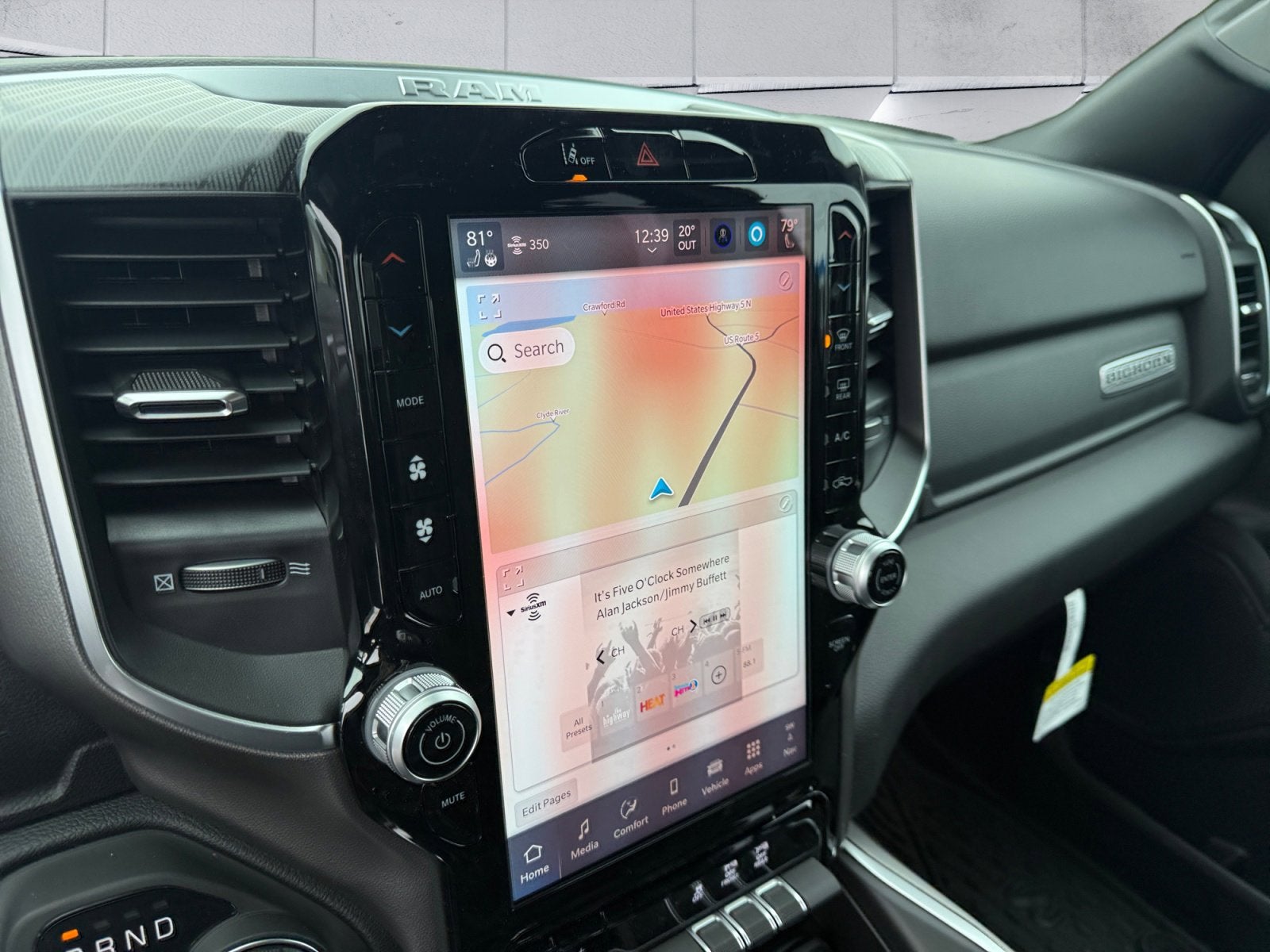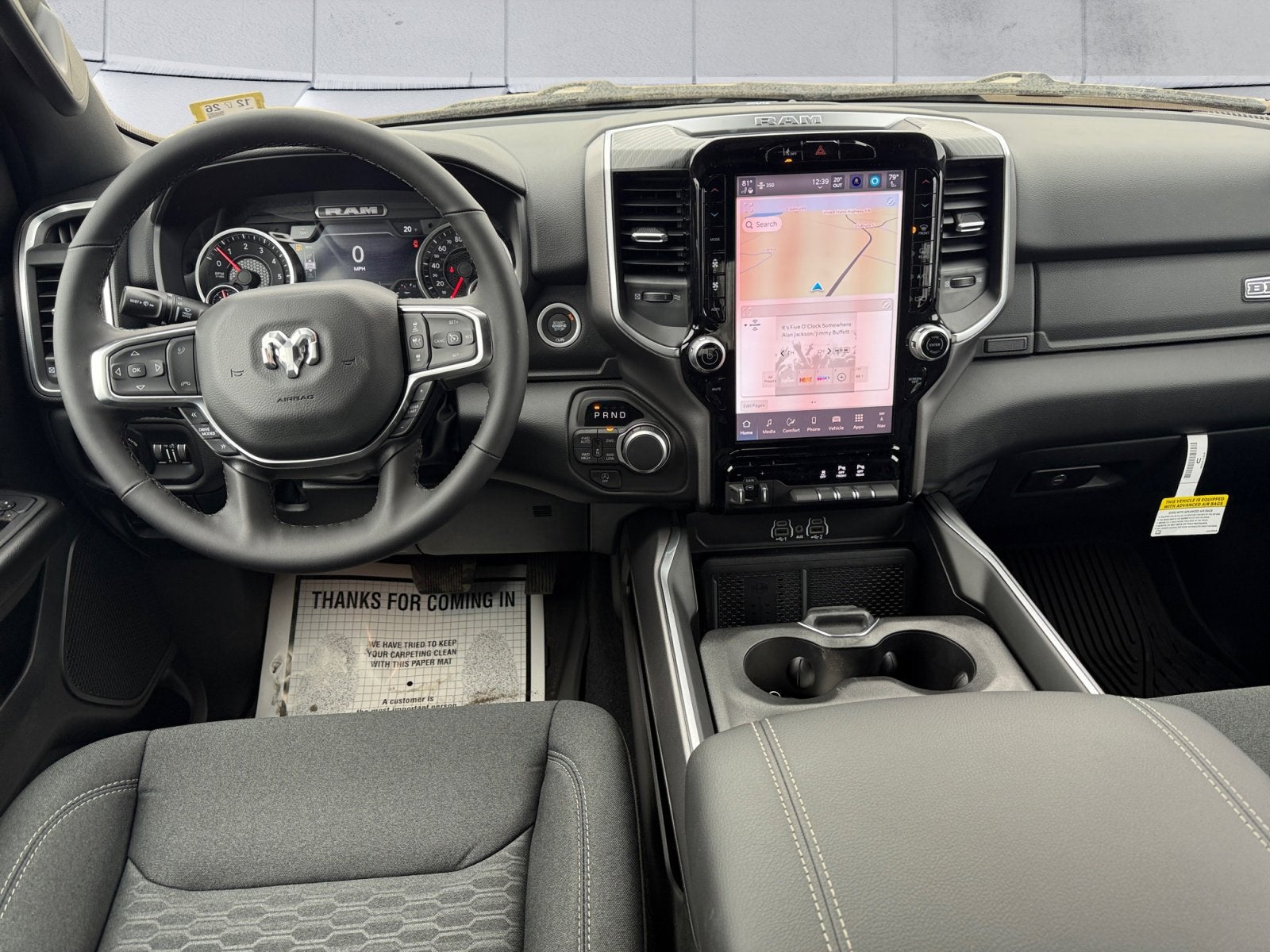 115V Auxiliary Power Outlet, 115V Auxiliary Rear Power Outlet, 12 Touchscreen Display, 2nd Row in Floor Storage Bins, 3 Rear Seat Head Restraints, 4 Way Front Headrests, 400W Inverter, 4G LTE Wi-Fi Hot Spot, 9 Amplified Speakers with Subwoofer, Accent Color Door Handles, Accent Color Premium Power Mirrors, Accent Color Tailgate Handle, Air Conditioning ATC with Dual Zone Control, Anti-Spin Differential Rear Axle, Apple CarPlay, Auto Power-Folding Mirrors, Auto-Dimming Exterior Driver Mirror, Auto-Dimming Rear-View Mirror, Big Horn Level 2 Equipment Group, Black Exterior Mirrors, Black Exterior Truck Badging, Black Headlamp Bezels, Black Interior Accents, Black Painted Exterior Mirrors Caps, Black Premium Power Mirrors, Black Tail Lamp Bezels, Body Color Fender Flares, Body Color Front Bumper, Body Color Rear Bumper with Step Pads, Bucket Seats, Center Console Parts Module, Cluster 7.0 TFT Color Display, Configurable Drive Mode, Connected Travel and Traffic Services, Connectivity - US/Canada, Convex Wide-Angle Exterior Mirror Insert, Deluxe Cloth Bucket Seats, Disassociated Touchscreen Display, Dual Exhaust with Black Tips, Exterior Mirrors Courtesy Lamps, Exterior Mirrors with Heating Element, Exterior Mirrors with Supplemental Signals, Front Seat Back Map Pockets, Full Length Floor Console, Global Telematics Box Module, Glove Box Lamp, Google Android Auto, GPS Antenna Input, GPS Navigation, Grille Black Surround Black Mesh, HD Radio, Heated Front Seats, Heated Steering Wheel, Integrated Center Stack Radio, Integrated Voice Command with Bluetooth®, Leather Wrapped Steering Wheel, LED Dome Lamp with on/Off Switch, LED Footwell Lighting, Manual Adjust 4-Way Front Passenger Seat, Media Hub with 2 Charge Only USBs, Night Edition, Overhead LED Lamps, Power 2-Way Driver Lumbar Adjust, Power Adjust 8-Way Driver Seat, Power Adjustable Pedals, Premium Overhead Console, Quick Order Package 27Z Big Horn, Radio: Uconnect 5 Navigation with 12.0 Display, RAM Grille Badge - Black, Rear 60/40 Folding Seat, Rear Center Armrest, Rear Power Sliding Window, Rear Window Defroster, Remote Tailgate Release, Security Alarm, SiriusXM Radio Service, SiriusXM with 360L, Steering Wheel Mounted Audio Controls, Sun Visors with Illuminated Vanity Mirrors, Universal Garage Door Opener, USB Host Flip, Wheels: 20 x 9.0 Aluminum Painted Clad, Wheels: 20 x 9 Aluminum Chrome Clad.