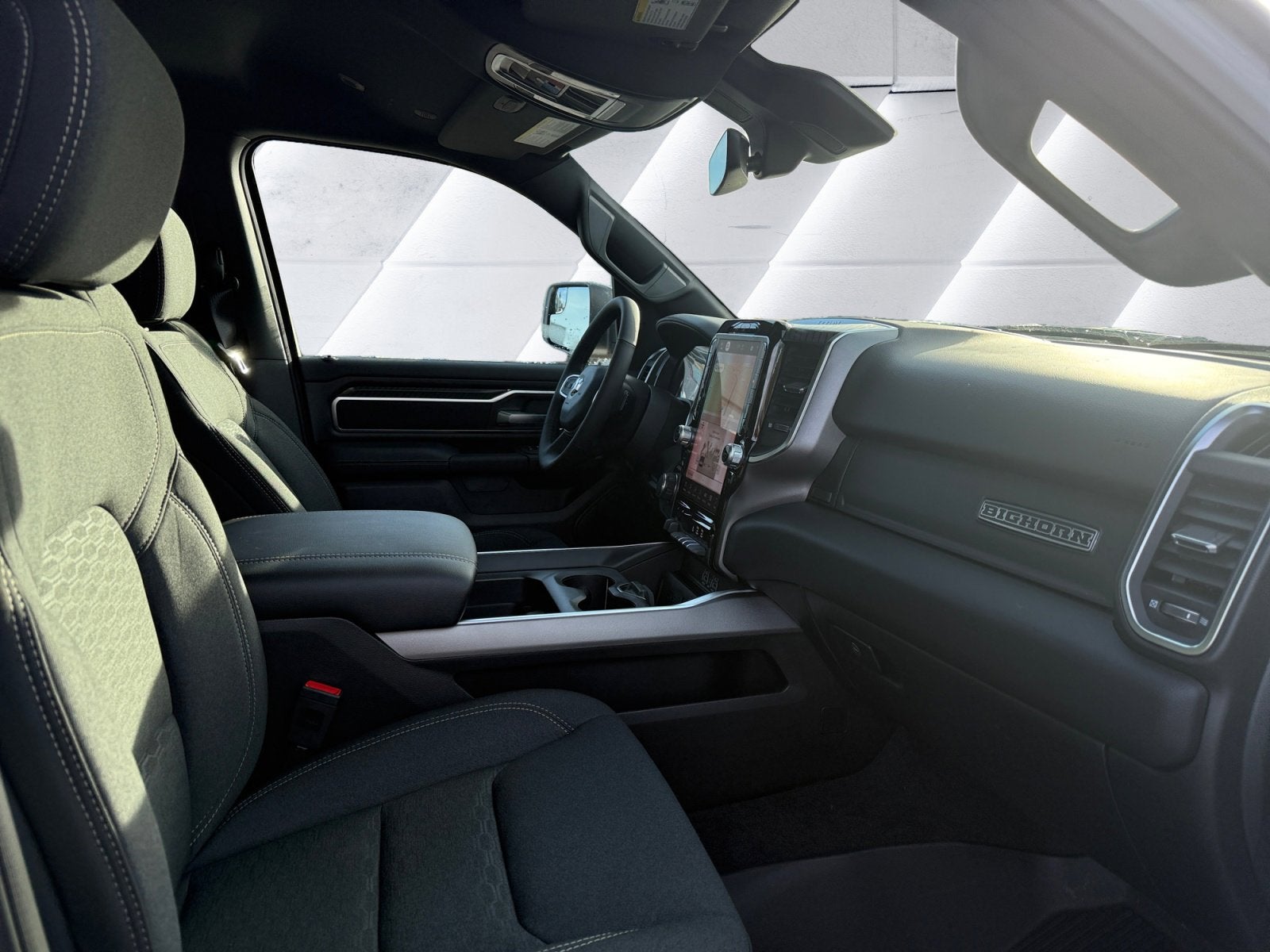 115V Auxiliary Power Outlet, 115V Auxiliary Rear Power Outlet, 12 Touchscreen Display, 3 Rear Seat Head Restraints, 4 Way Front Headrests, 400W Inverter, 4G LTE Wi-Fi Hot Spot, Accent Color Door Handles, Accent Color Premium Power Mirrors, Accent Color Tailgate Handle, Anti-Spin Differential Rear Axle, Apple CarPlay, Auto Power-Folding Mirrors, Auto-Dimming Exterior Driver Mirror, Auto-Dimming Rear-View Mirror, Big Horn Level 2 Equipment Group, Black Exterior Mirrors, Black Exterior Truck Badging, Black Headlamp Bezels, Black Interior Accents, Black Painted Exterior Mirrors Caps, Black Premium Power Mirrors, Black Tail Lamp Bezels, Body Color Fender Flares, Body Color Front Bumper, Bucket Seats, Center Console Parts Module, Cluster 7.0 TFT Color Display, Configurable Drive Mode, Connectivity - US/Canada, Convex Wide-Angle Exterior Mirror Insert, Deluxe Cloth Bucket Seats, Disassociated Touchscreen Display, Exterior Mirrors Courtesy Lamps, Front Seat Back Map Pockets, Full Length Floor Console, Glove Box Lamp, Google Android Auto, GPS Antenna Input, GPS Navigation, Grille Black Surround Black Mesh, HD Radio, Heated Front Seats, Heated Steering Wheel, Integrated Center Stack Radio, Leather Wrapped Steering Wheel, LED Footwell Lighting, Manual Adjust 4-Way Front Passenger Seat, Night Edition, Overhead LED Lamps, Power 2-Way Driver Lumbar Adjust, Power Adjust 8-Way Driver Seat, Power Adjustable Pedals, Premium Overhead Console, Quick Order Package 27Z Big Horn, RAM Grille Badge - Black, Rear 60/40 Folding Seat, Rear Center Armrest, Rear Power Sliding Window, Rear Window Defroster, Remote Tailgate Release, Security Alarm, SiriusXM Radio Service, Steering Wheel Mounted Audio Controls, Universal Garage Door Opener, USB Host Flip, Wheels: 20 x 9.0 Aluminum Painted Clad.