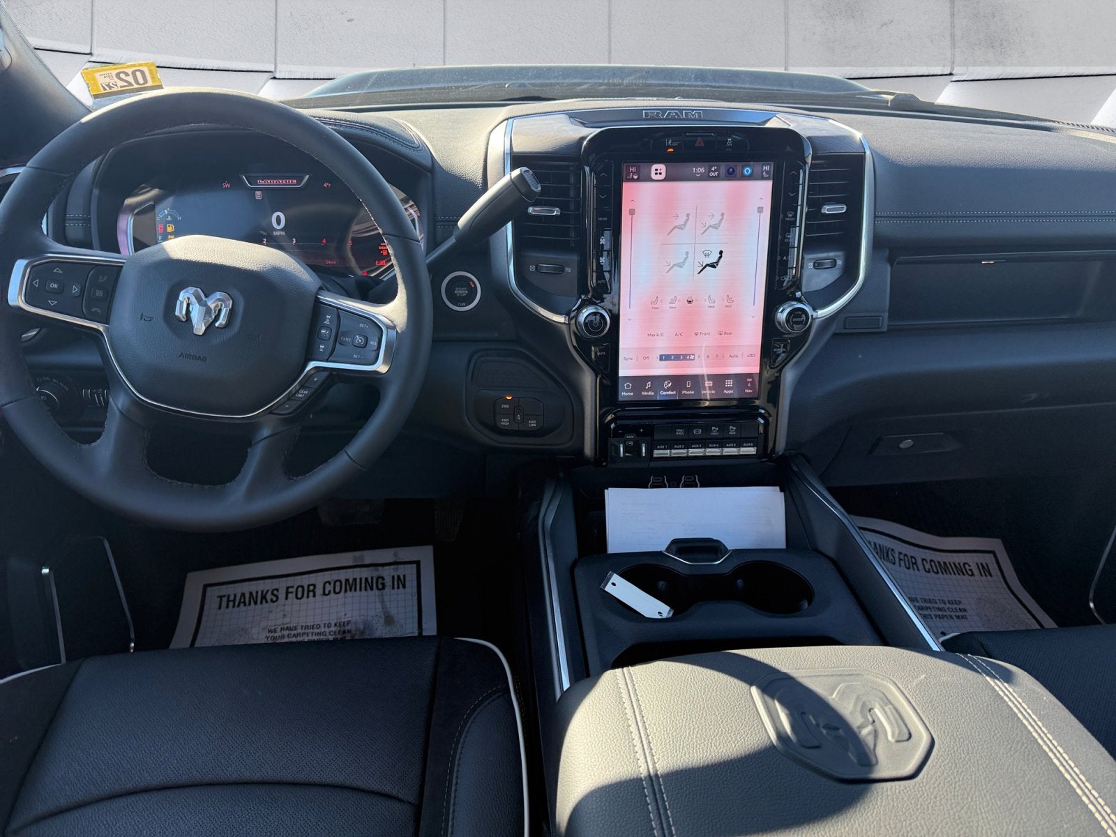 #1 Seat Foam Cushion, 10 Speakers, 115V Auxiliary Rear Power Outlet, 2 Way Rear Headrest Seat, 2nd Row in Floor Storage Bins, 4 Way Front Headrests, Active Lane Management System, Adaptive Steering System, Anti-Spin Differential Rear Axle, Auto Adjust in Reverse Exterior Mirrors, Auto Dim Exterior Mirror, Auto High Beam Headlamp Control, Auto Power-Folding Mirrors, Auto-Dimming Exterior Passenger Mirror, Black Exterior Mirrors, Black Exterior Truck Badging, Black Wheel Center Hub, Body Color Grille-Surround, Bucket Seats, Center Stop Lamp with Cargo View Camera, Chrome Exterior Mirrors, Cold Weather Group, Drowsy Driver Detection, Dual Wireless Charging Pad, Engine Block Heater, Exterior Mirrors Courtesy Lamps, Exterior Mirrors with Heating Element, Exterior Mirrors with Memory, Exterior Mirrors with Supplemental Signals, Foam Bottle Insert (door Trim Panel), Folding Flat Load Floor Storage, Forward and Reverse Utility Lights, Front Seat Back Map Pockets, Full Length Upgraded Floor Console, Gloss Black Grille Billets/Accents, GPS Navigation, Heated Front Seats, Heated Steering Wheel, High Back Seats, Laramie Level 1 Plus Equipment Group, Leather Trimmed Bucket Seats, LED Bed Lighting, Mirror Running Lights, MOPAR Deployable Bed Step, MOPAR Spray in Bedliner, MOPAR Winter Front Grille Cover, Navigation System, Night Edition, Power 2-Way Driver Lumbar Adjust, Power 2-Way Passenger Lumbar Adjust, Power Adjust 8-Way Driver Seat, Power Adjust 8-Way Front Passenger Seat, Power Adjust Mirrors, Power Adjustable Pedals with Memory, Power Heated Fold Telescopic Mirrors with Memory, Power Sunroof, Power Telescoping Mirrors, Power-Adjustable Convex Aux Mirrors, Quick Order Package 24H Laramie, Radio: Uconnect 5 Navigation with 12.0 Display, Radio/Driver Seat/Mirrors/Pedals Memory, Rain Sensitive Windshield Wipers, Rear 60/40 Folding Seat, Remote Tailgate Release, Sport Performance Hood, Traffic Sign Recognition, Ventilated Front Seats, Wheels: 20 x 8.0 Black Painted Aluminum.